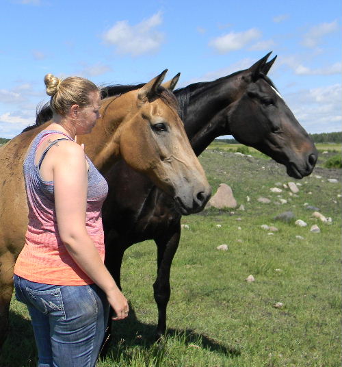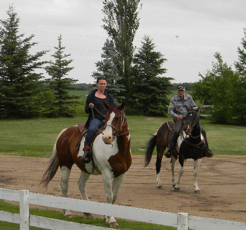 Our niece Tiffany enjoying a ride on Major, Michael on Jack