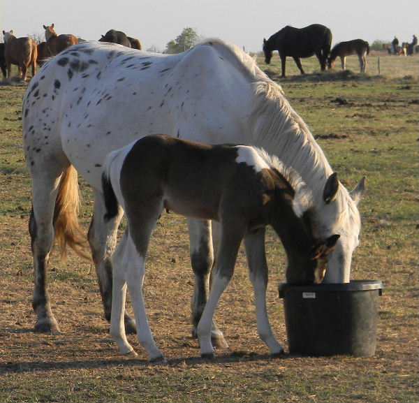 Gypsy and her colt enjoying the lick tub